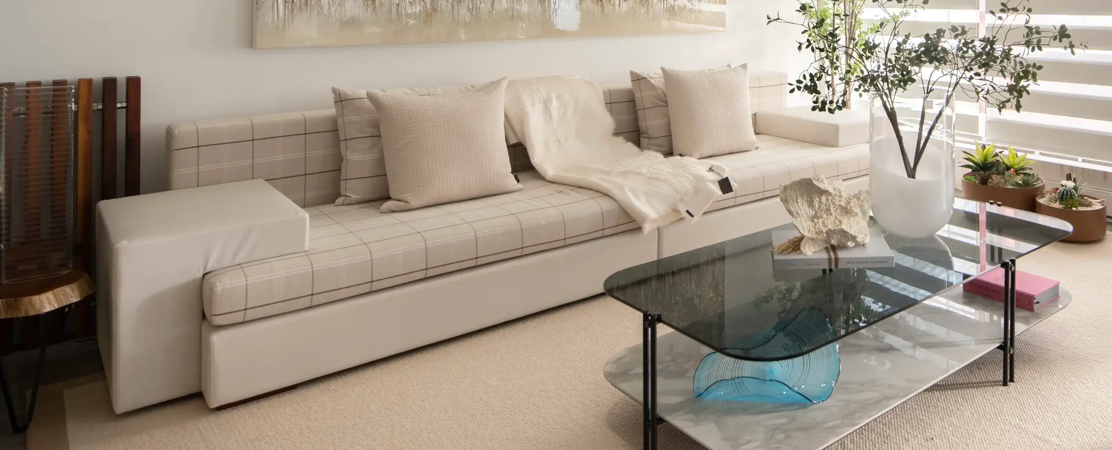 The Hannah Sofa is designed with a low-profile silhouette that brings a calm, modern presence to any living space. Built with a very strong frame and base, it offers exceptional durability while maintaining a refined, contemporary look. Its proportions are thoughtfully balanced, making it comfortable for both big and small people. The seating cushions are removable and easy to handle, allowing for simple cleaning or quick updates. With a wide variation of fabrics to choose from, the Hannah Sofa can be fully customized—including unique combinations of leather and fabric for a tailored, elevated finish. The wide armrests add versatility to the design, functioning as a side table, display surface, or extra seating area when needed. Clean, understated, and adaptable, the Hannah Sofa brings both beauty and practicality to everyday living.