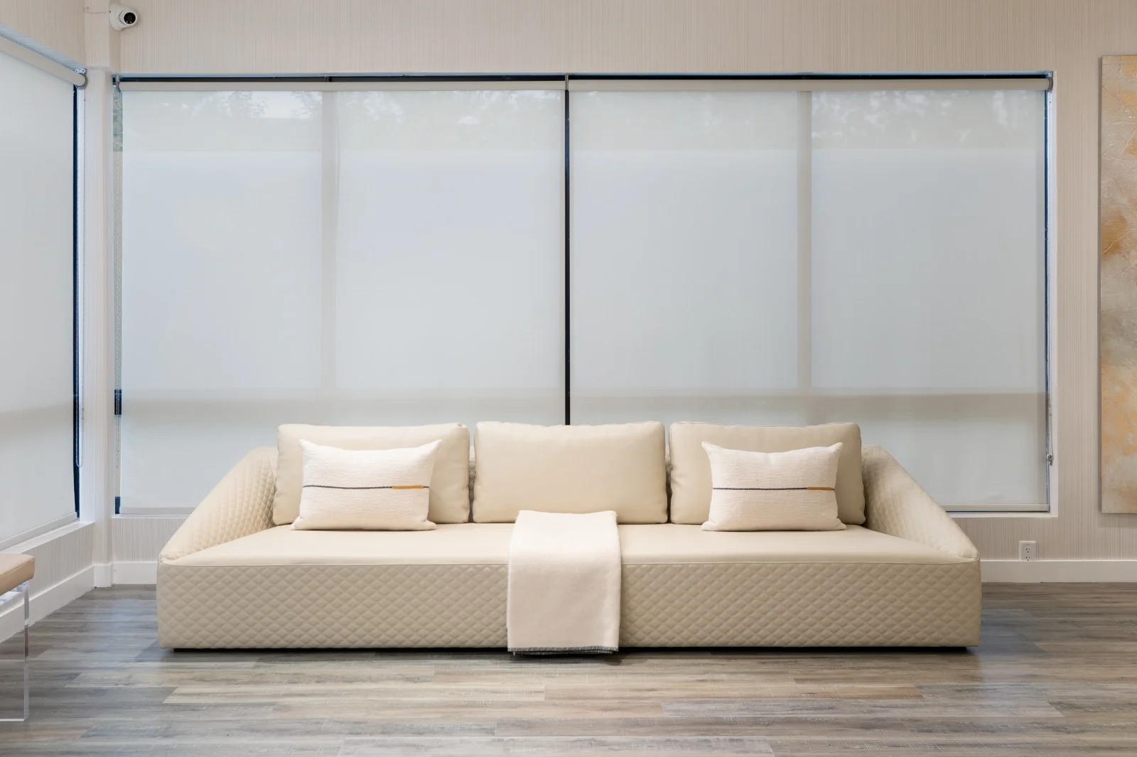 The Justin Sofa blends modern comfort with a tailored, architectural silhouette. Its gently sloped arm design offers a relaxed, inviting profile that enhances both style and comfort. With generous deep seating, it creates the perfect lounge experience for everyday living. Designed for complete personalization, the Justin Sofa is available in a wide range of materials, including premium fabrics, supple leathers, or a combination of both for a striking, custom look. The stitching details can also be customized, allowing you to choose finishes that feel minimal, refined, or more decorative depending on your aesthetic. The quilted exterior panels add subtle texture and sophistication, while the clean lines and plush back cushions create a balanced, contemporary feel. Whether you're designing for a modern home, luxury condo, or hospitality space, the Justin Sofa delivers versatility, comfort, and timeless appeal. A piece that can be tailored from top to bottom, the Justin Sofa is crafted to reflect your personal style with elevated ease.