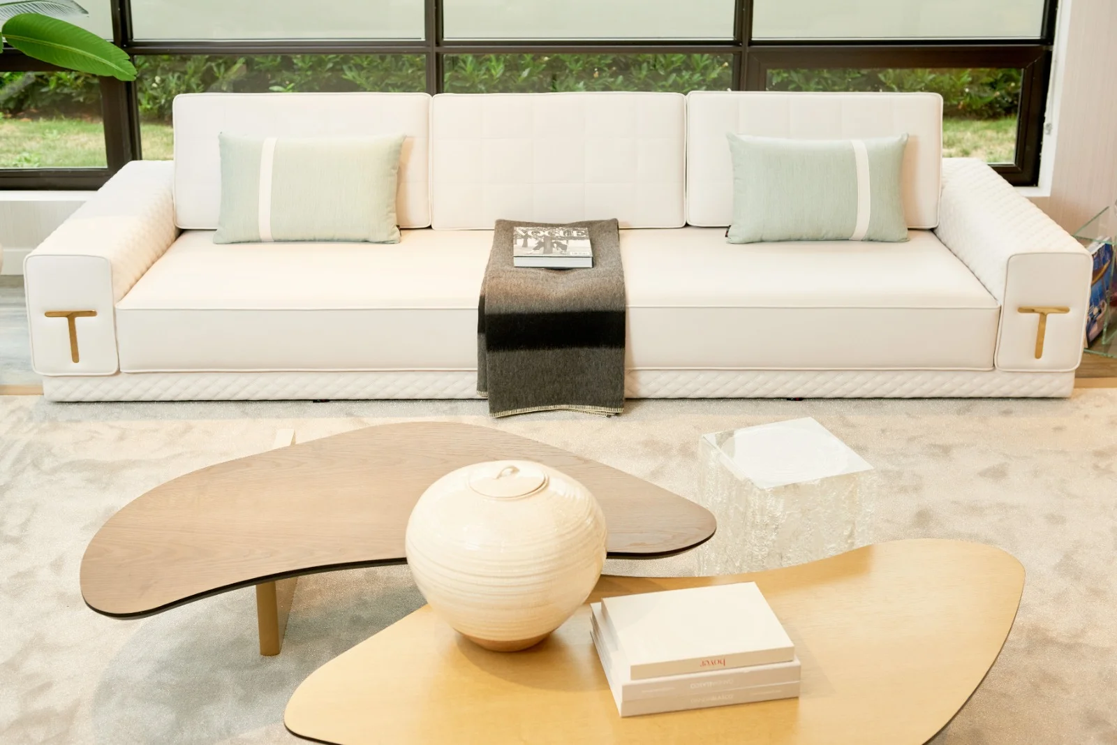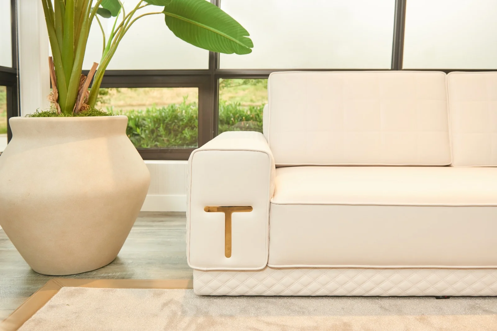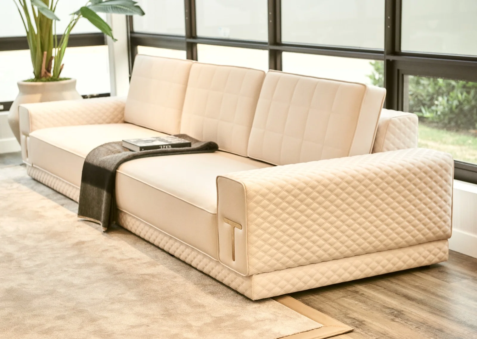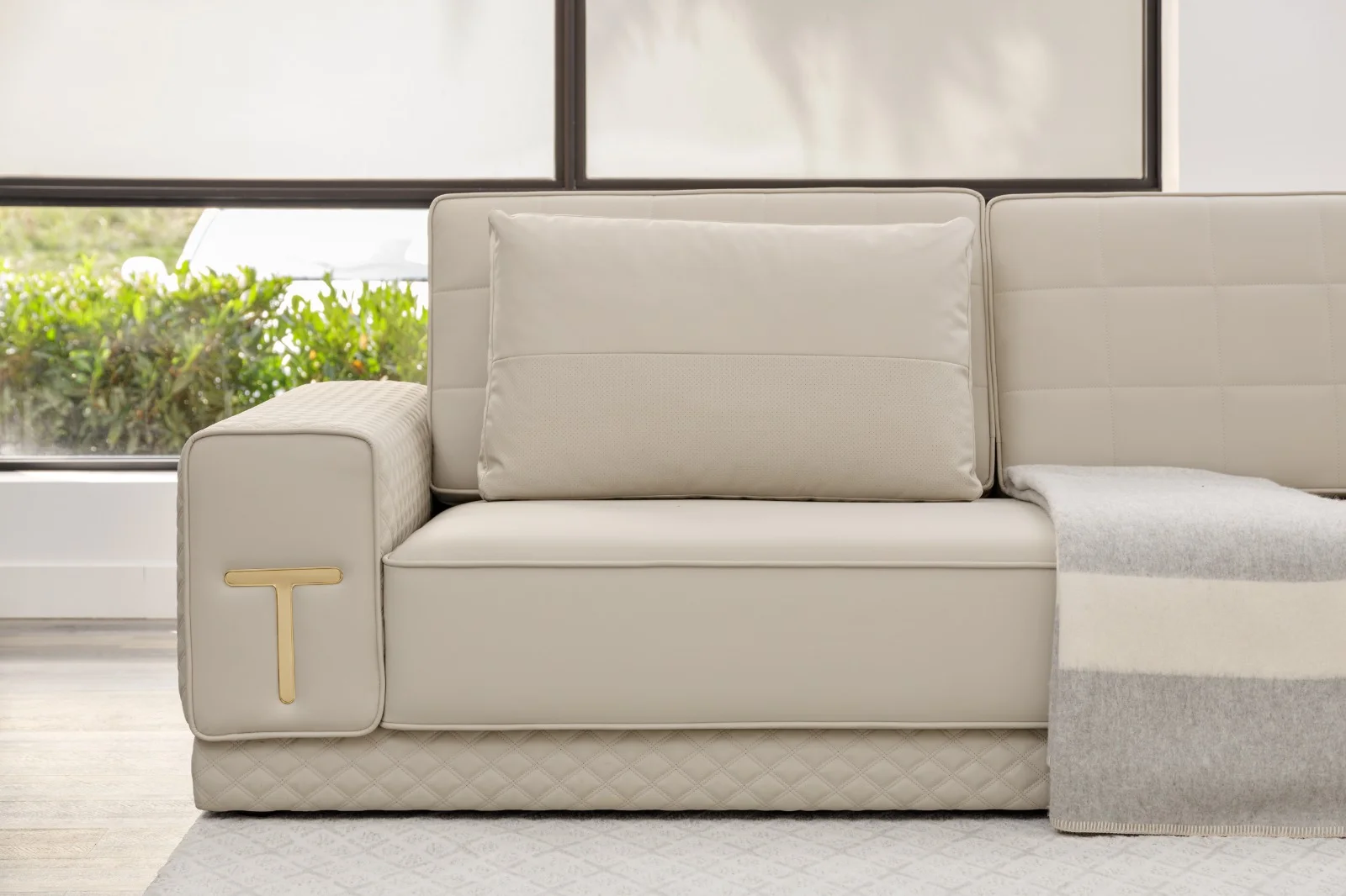The Koby Sofa blends modern precision with customizable luxury, offering a clean, structured silhouette that feels both contemporary and timeless. Designed with a custom back layout, each back cushion is crafted for a tailored look while still providing exceptional comfort and support. The removable seat cushions make switching or refreshing the seating effortless—ideal for long-term convenience and easy maintenance. Both the arm panels and sides feature the option of a signature "T" detail, which can be added for a bold, distinctive touch or omitted for a more minimal, understated look. Fully adaptable to your style, the Koby Sofa is available in a wide range of fabric and leather options, with the ability to mix materials for a personalized finish. Whether you prefer a sleek monochromatic aesthetic or a contrasting combination, the Koby can be customized to complement any interior. Thoughtfully designed and highly versatile, the Koby Sofa is a refined statement piece—crafted to evolve with your space and reflect your design vision.